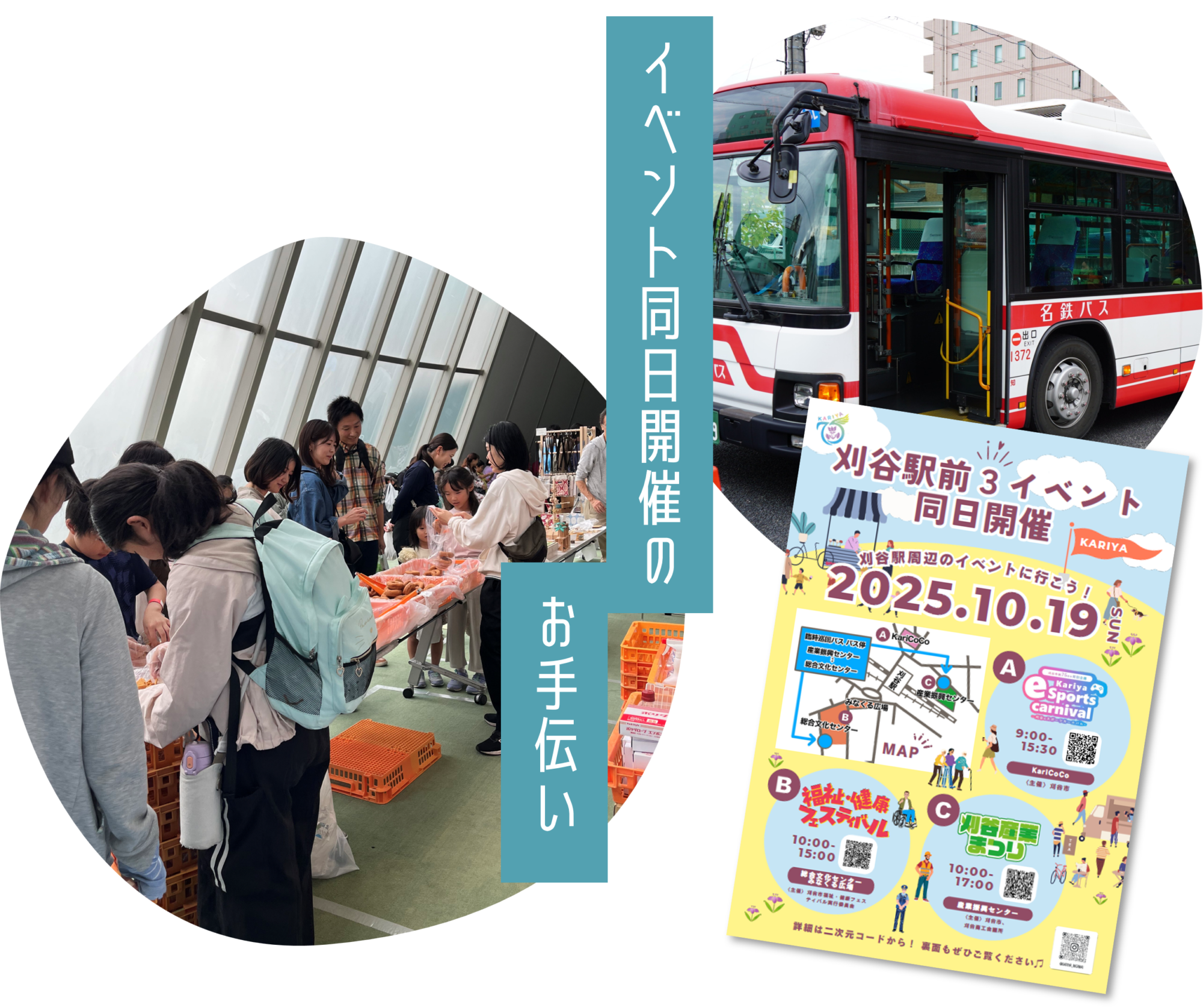 福祉・健康フェスティバル(実行委員会業務受託)と刈谷産業まつりの開催に合わせ、両会場の巡回バスや、マルシェ、キッチンカーを招きました。